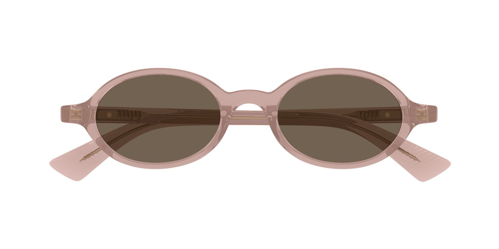 A petite oval silhouette with signature gold BV hardware on the temples.