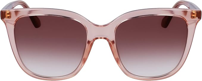 A sophisticated rectangular silhouette with lettered logo on temples.