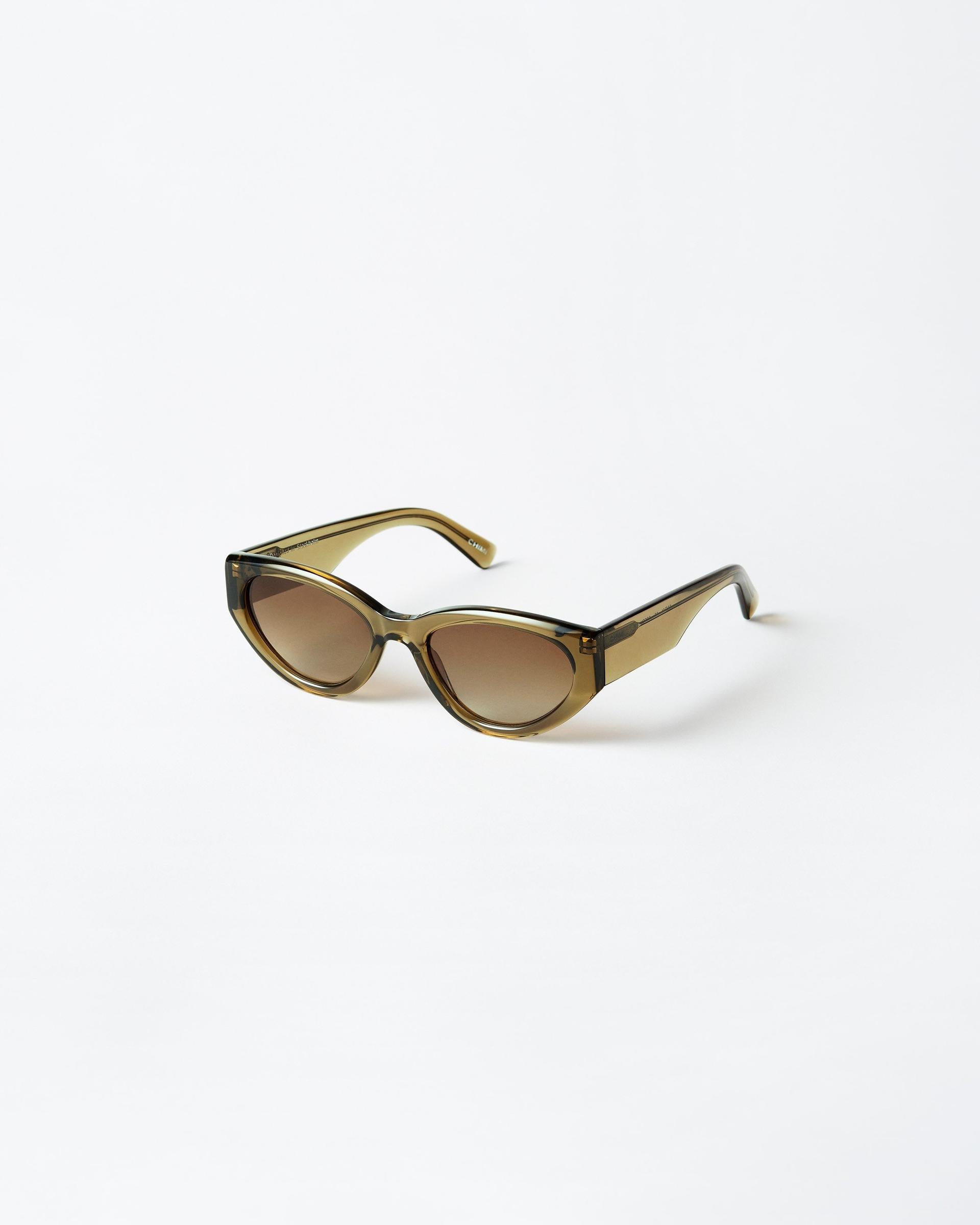 A contemporary cat-eye with squared-off wings. Handcrafted in Italian acetate, bevel cuts add depth to the curvaceous silhouette, while linear temples and angled arches imbue intrigue. Fitted with softly rounded UV-protective CR39 lenses.
