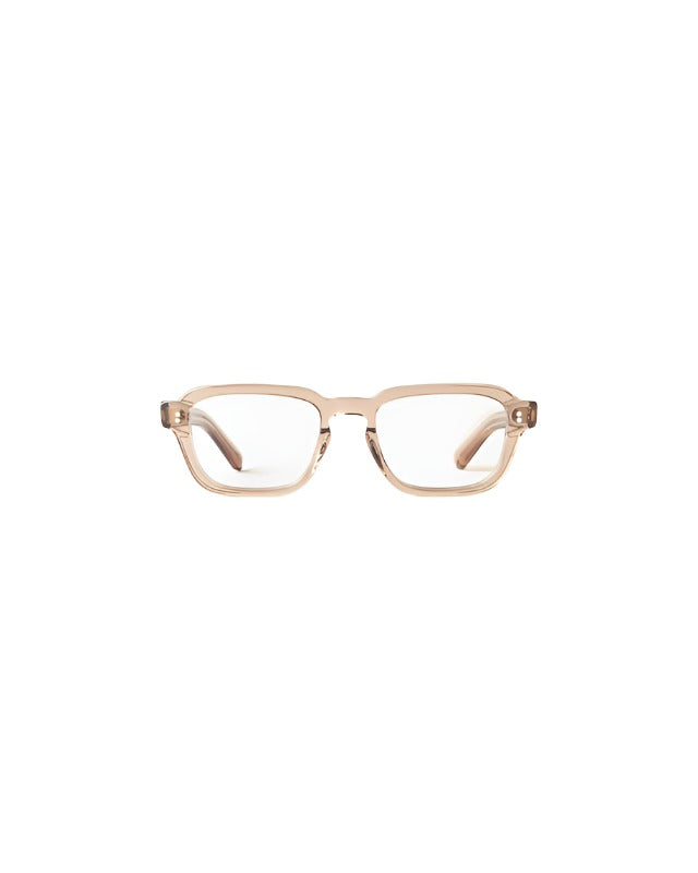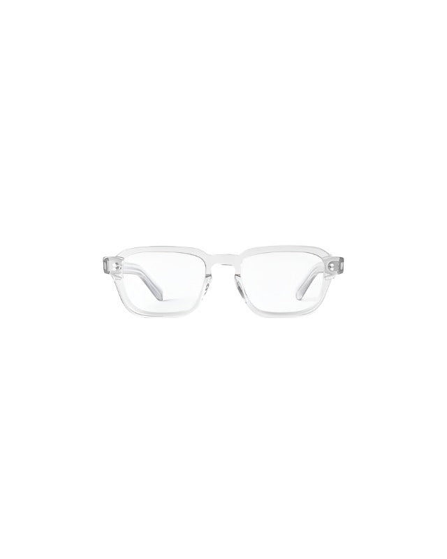 A is a timeless rectangular silhouette with a sculptural temple construction. Handcrafted in premium Italian acetate with silver-tone hardware rivets and beveled brow, finished with pointed temple tips for an elegant profile. Fitted with anti-reflective demo lenses.