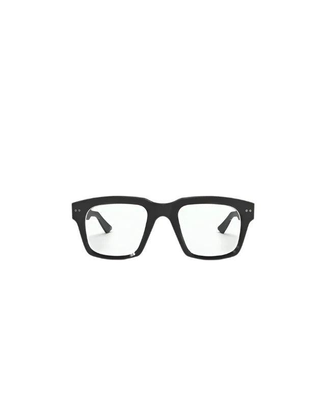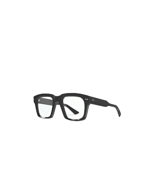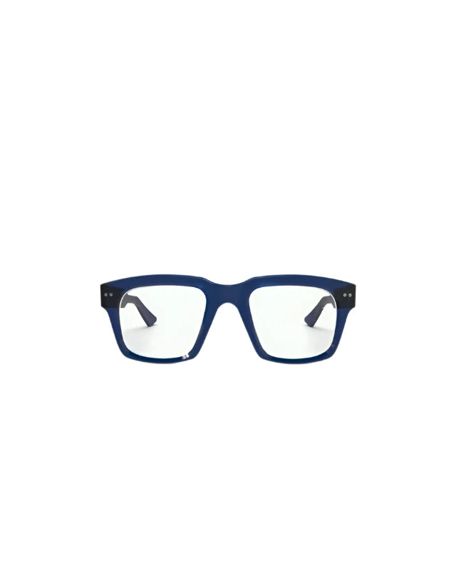 G is a timeless rectangular silhouette with a sculptural temple construction. Handcrafted in premium Italian acetate with silver-tone hardware rivets and beveled brow. Fitted with anti-reflective demo lenses.