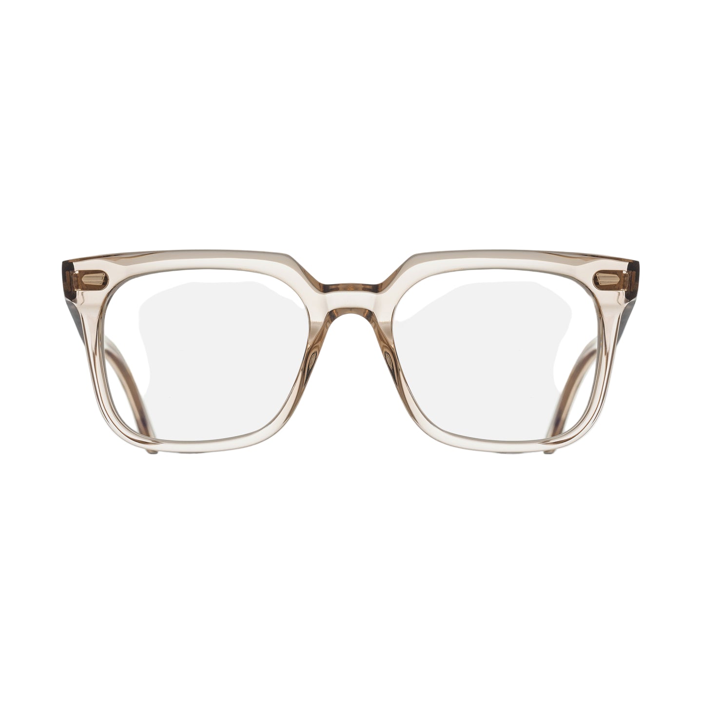 Cutler and Gross's storied Oyster pin decorates the front of this square optical. It is set with a high hinge and threaded with engraved core wire.