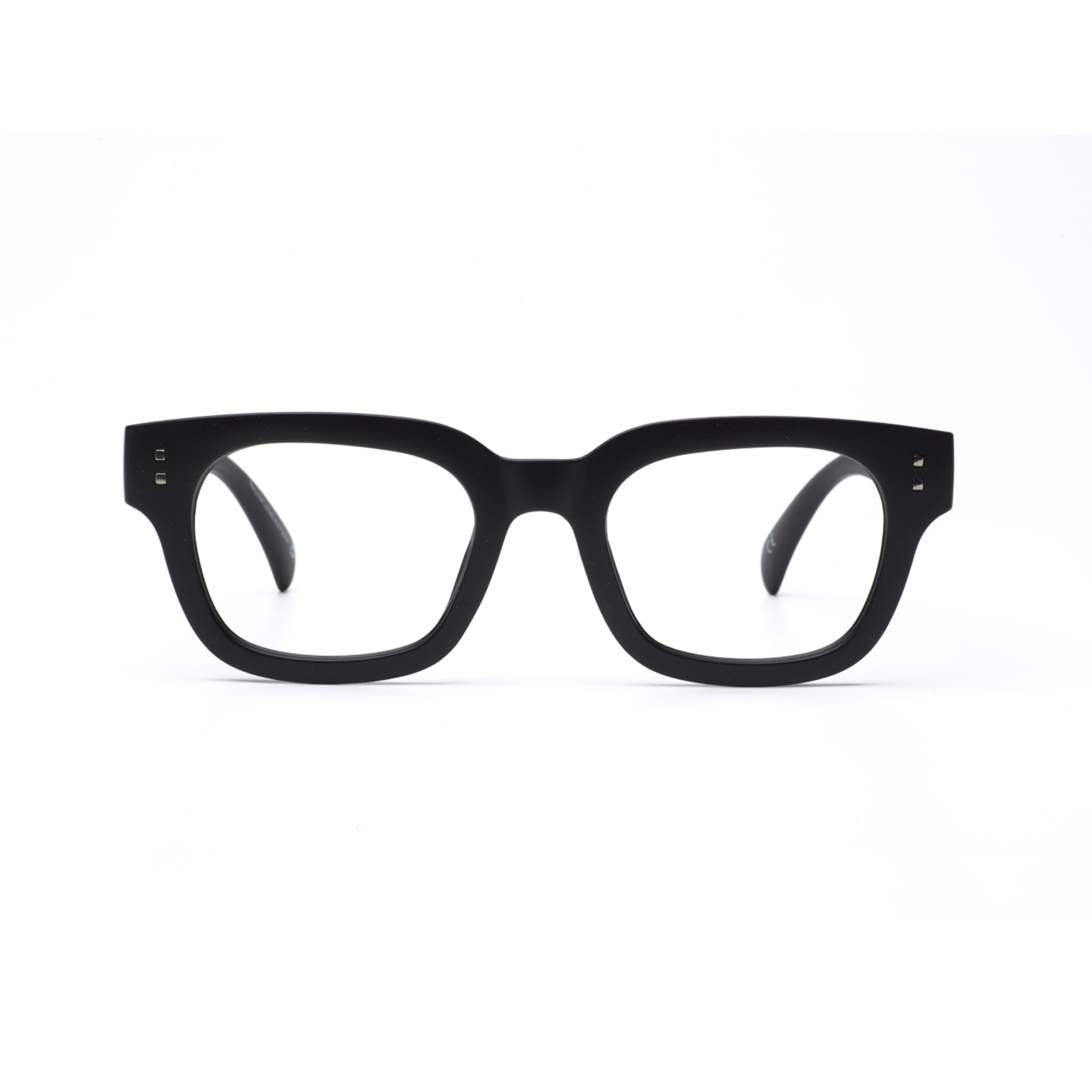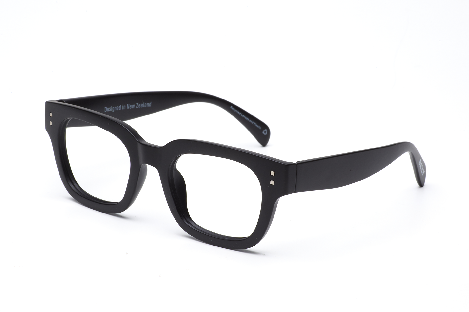 A thick rectangular frame embodies a bold, distinctive style. A unisex design with unique detailing, crafted for comfort and quality. Made using recycled lenses and plastics, this frame also features a smooth matte finish and spring-loaded hinges for a secure fit.