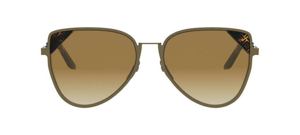 A take on the pilot design with the iconic Fendi pattern on frame front corners and lettered logo on temples.