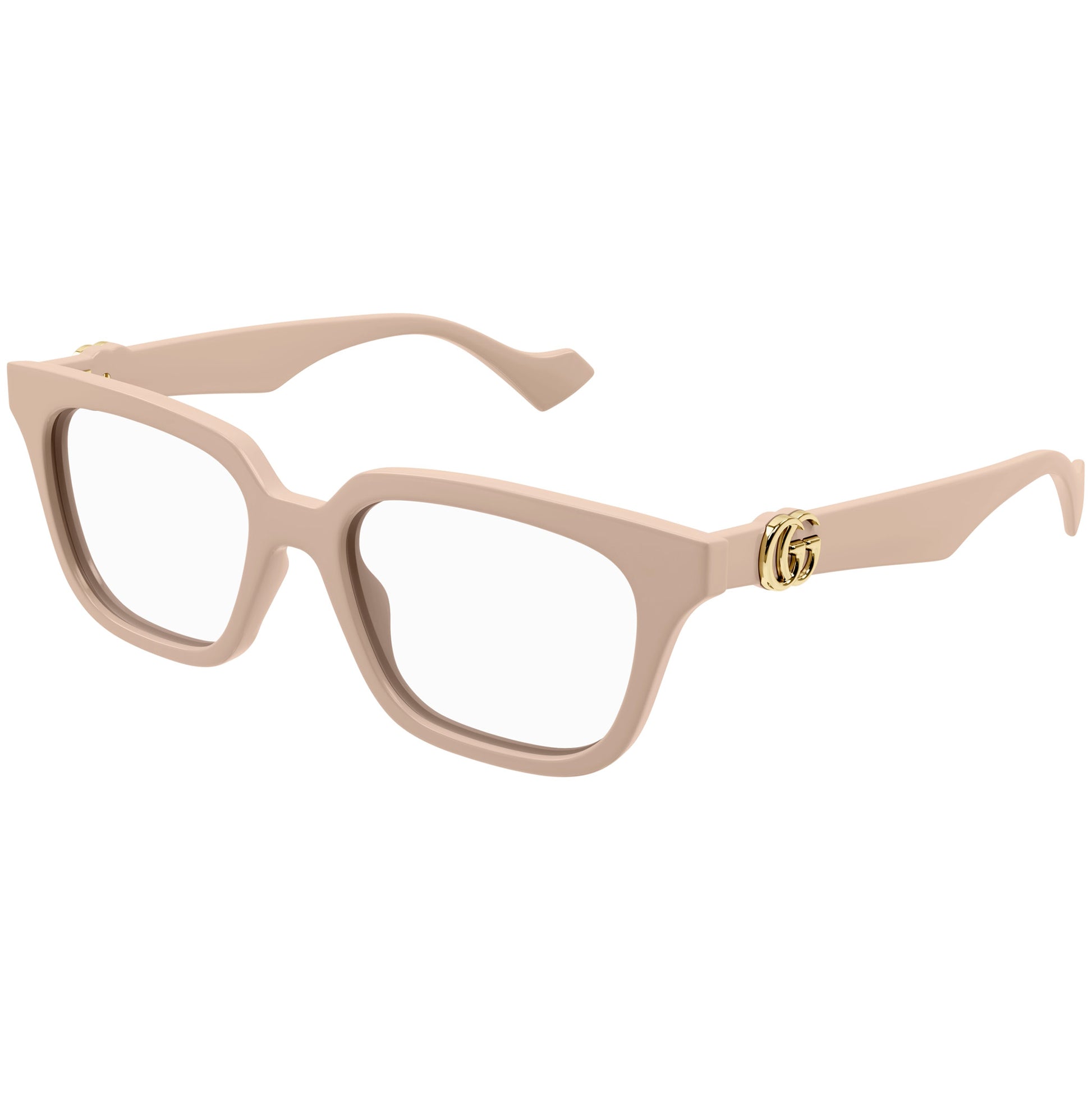 A squared cat eye shape with Gucci running logo tridimensional on temples.