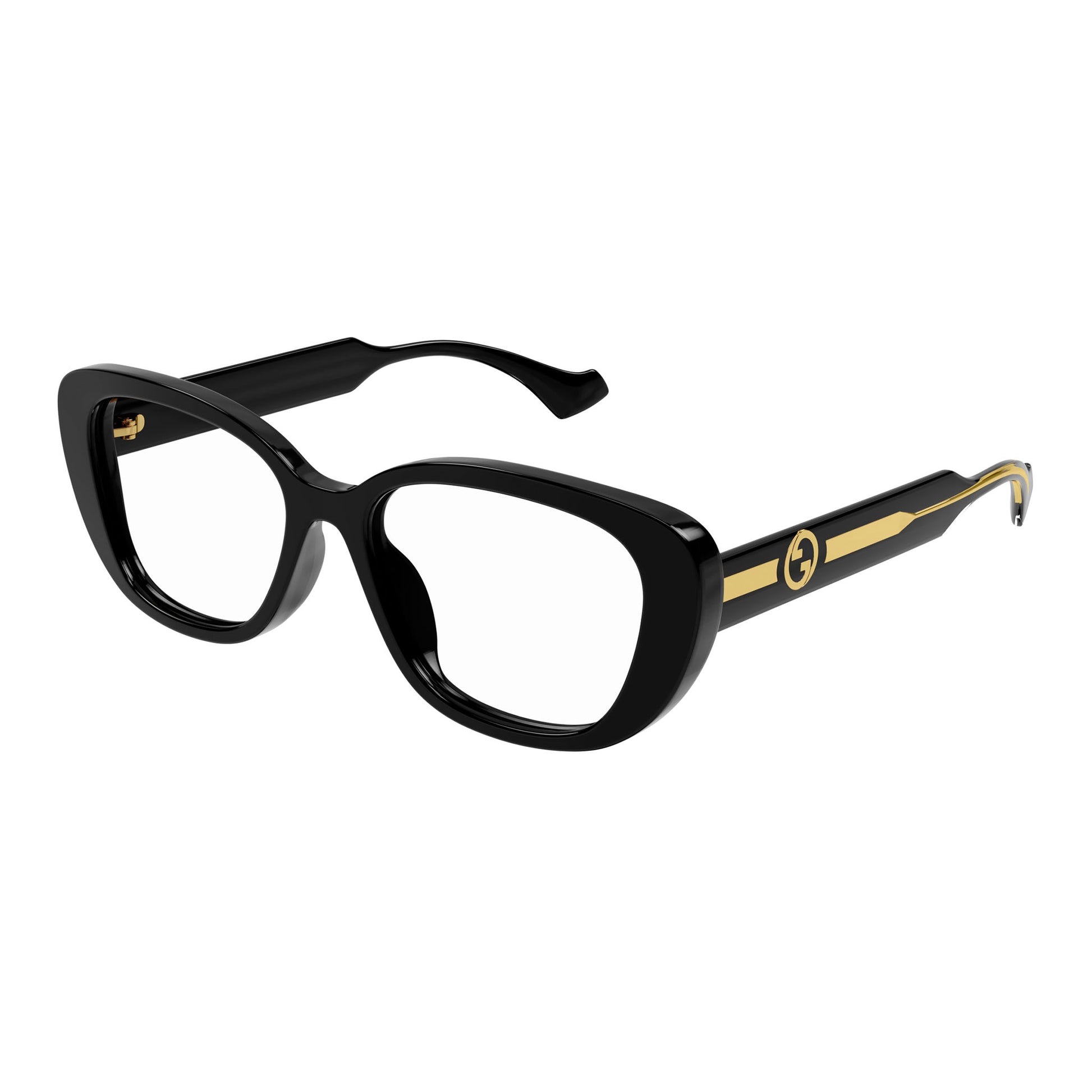 A bold rounded cat-eye shape with gold Gucci logo on temples.