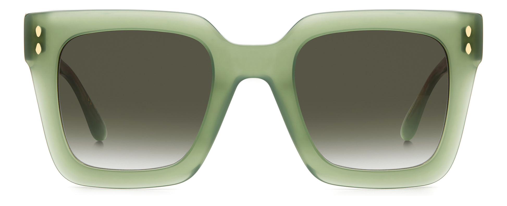 A bold squared silhouette in a lightweight acetate. Featuring metal detailing on the hinge and leaf shaped metal rivets alongside the signature motif.