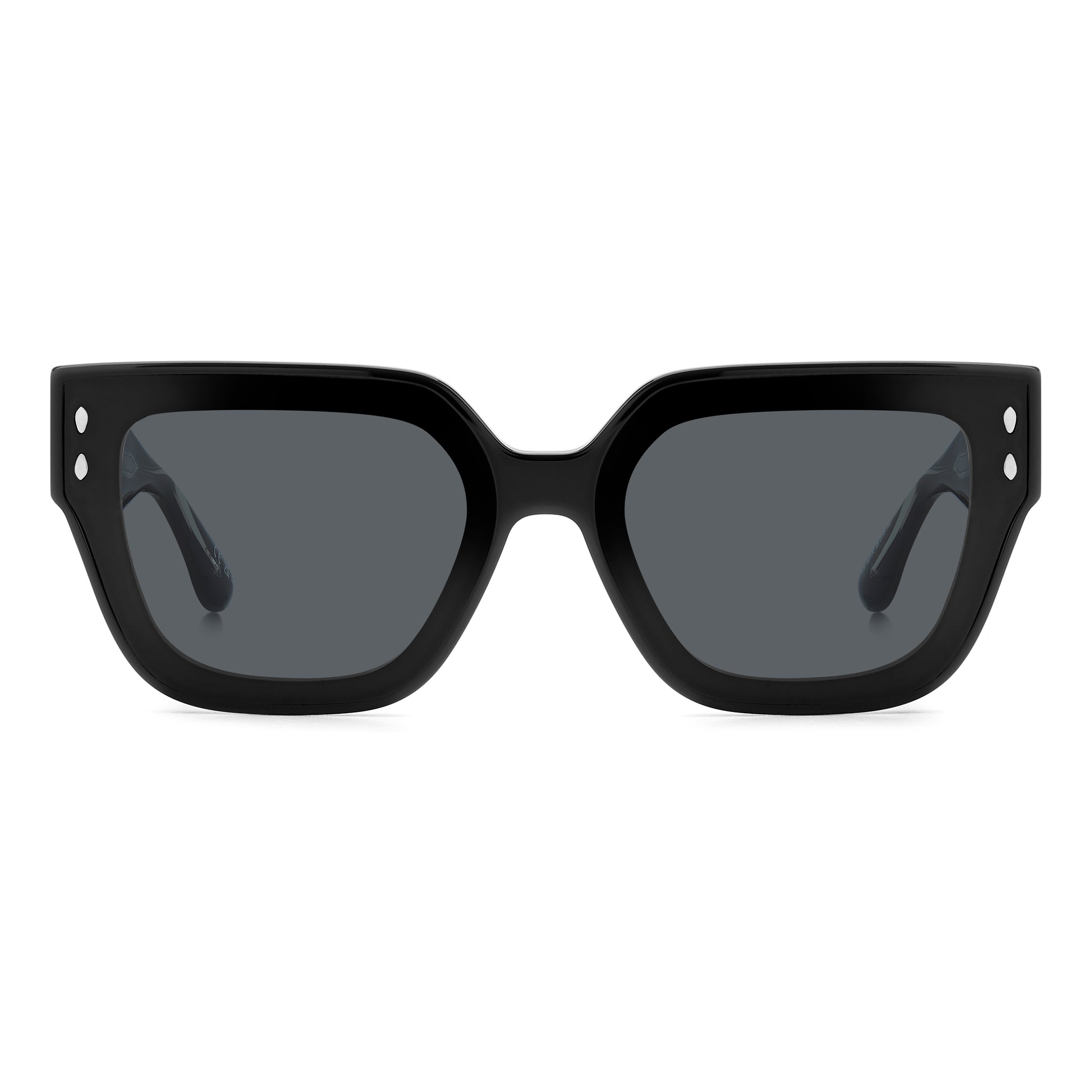 A sleek and stylish oversized silhouette with side temples. Leaf-shaped end tips and silver leaf rivets on the front.