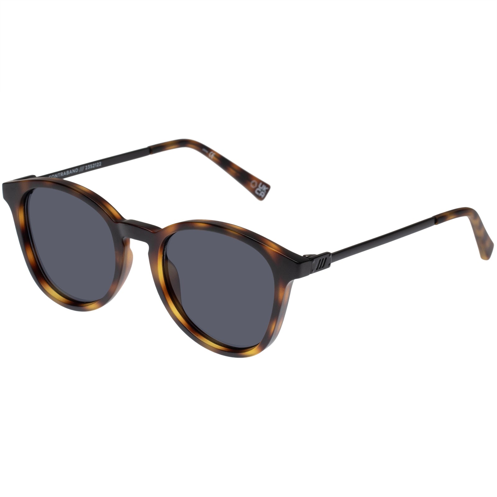 Taking inspiration from our iconic BANDWAGON sunglasses, our CONTRABAND sunglasses offer a rounded vintage aesthetic integrated with luxurious metal detailing. Designed with refined European proportions, this unisex frame will look great on all face shapes and features deluxe metal temples with hinge hardware discreetly embossed with the signature Le Specs flag stripe.