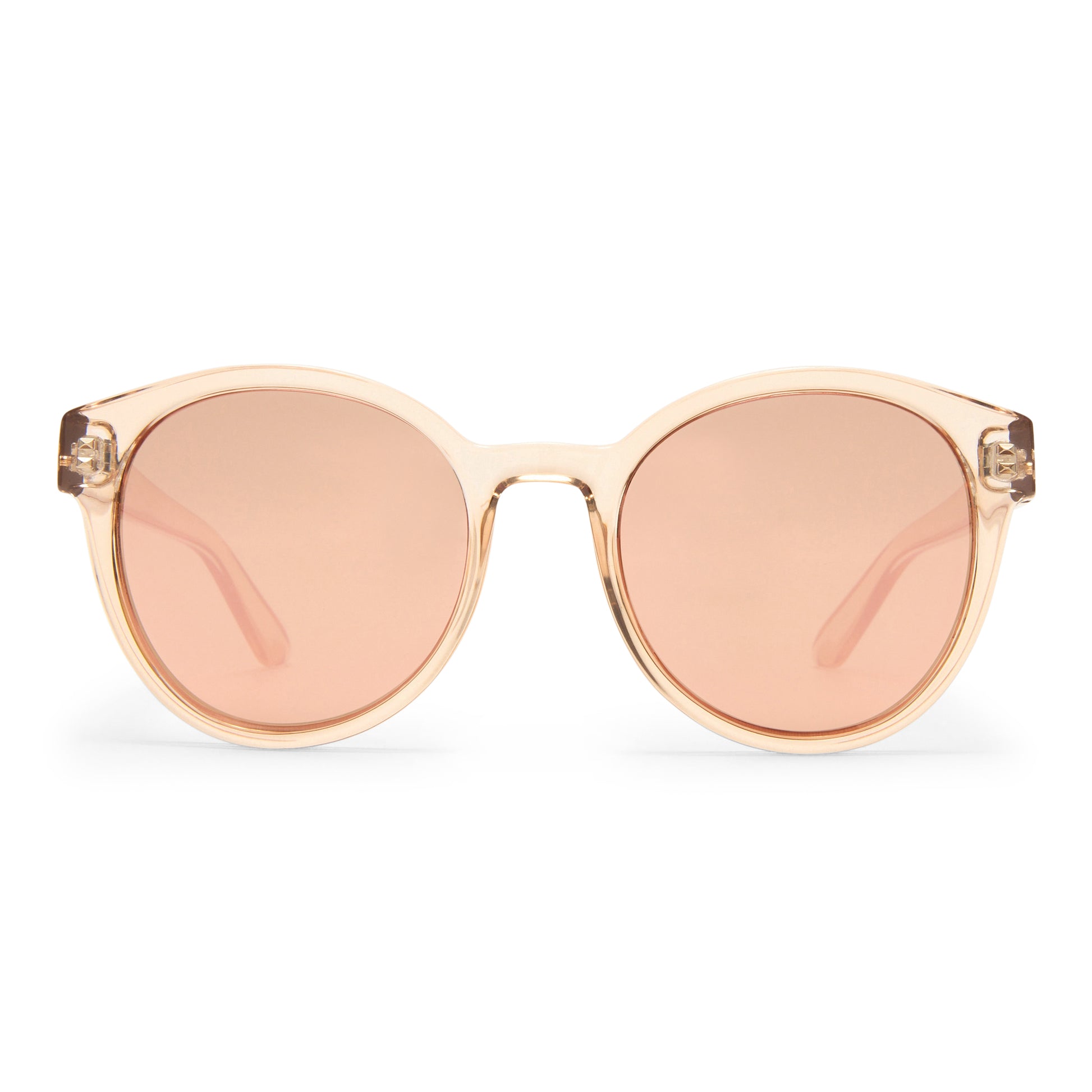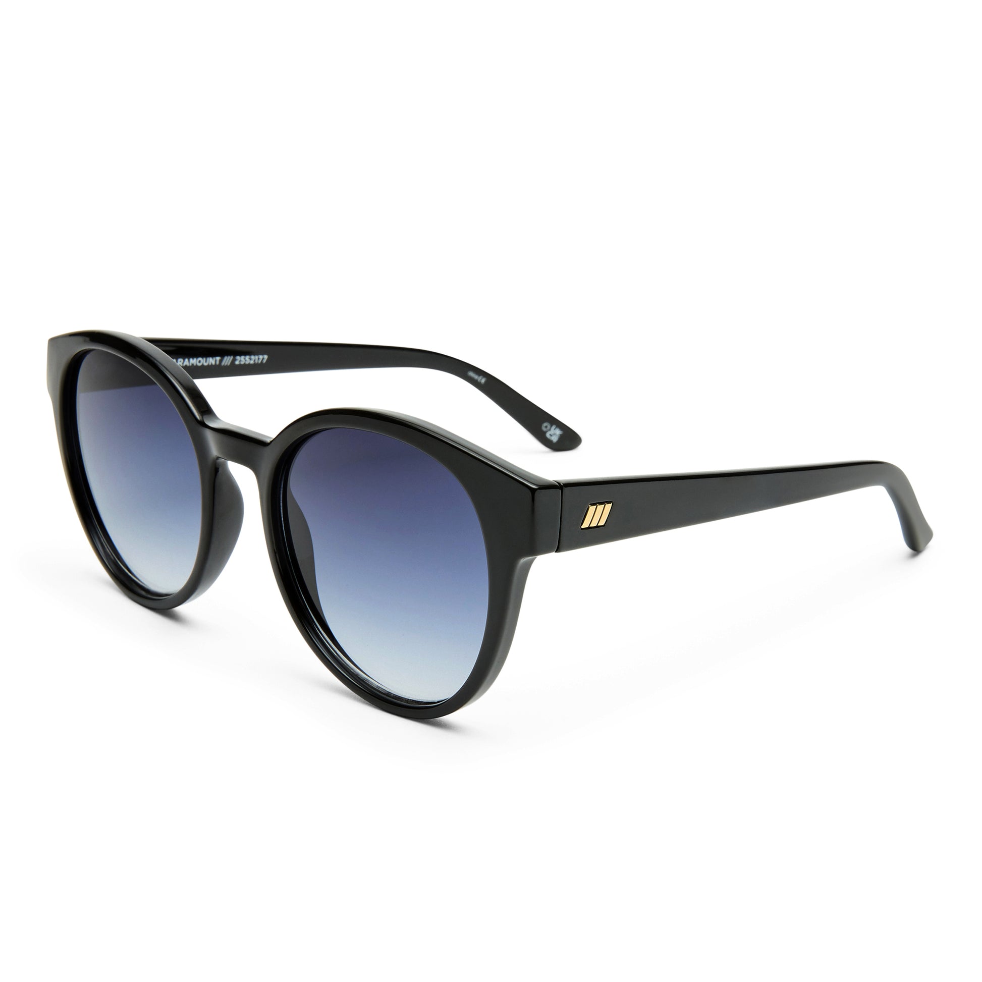 Oversized and feminine, our Paramount sunglasses offer an everyday look for all face shapes. This refined glamourous round style is designed with a modern flat profile and iconic Le Specs flag stripe metal hardware on both temples.
