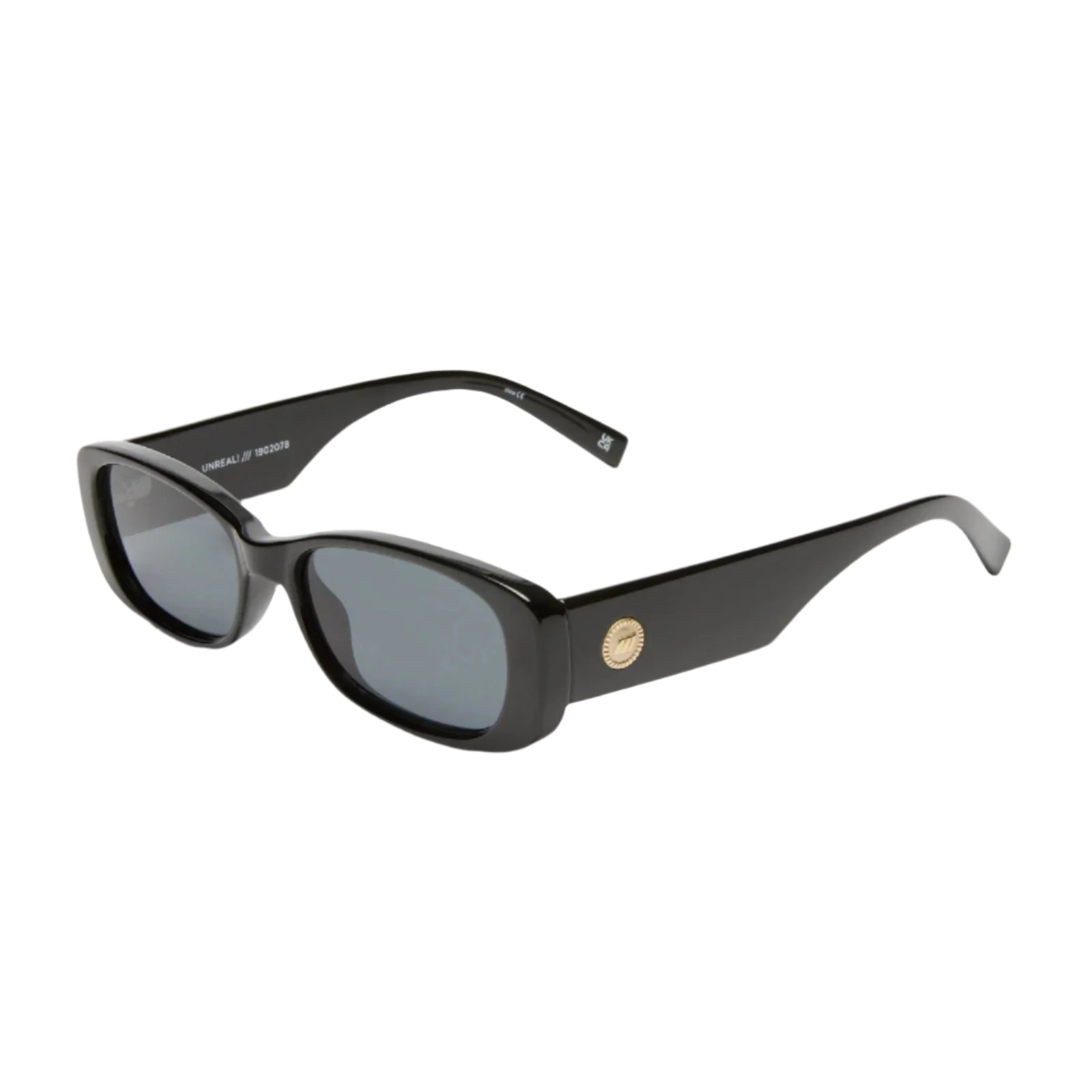 Designed with a '90s supermodel vibe, our iconic UNREAL! rectangular sunglasses are highlighted by a bold frame and thick temples. With a comfortable fit and narrow profile, this piece features luxurious gold vintage hardware on each temple.
