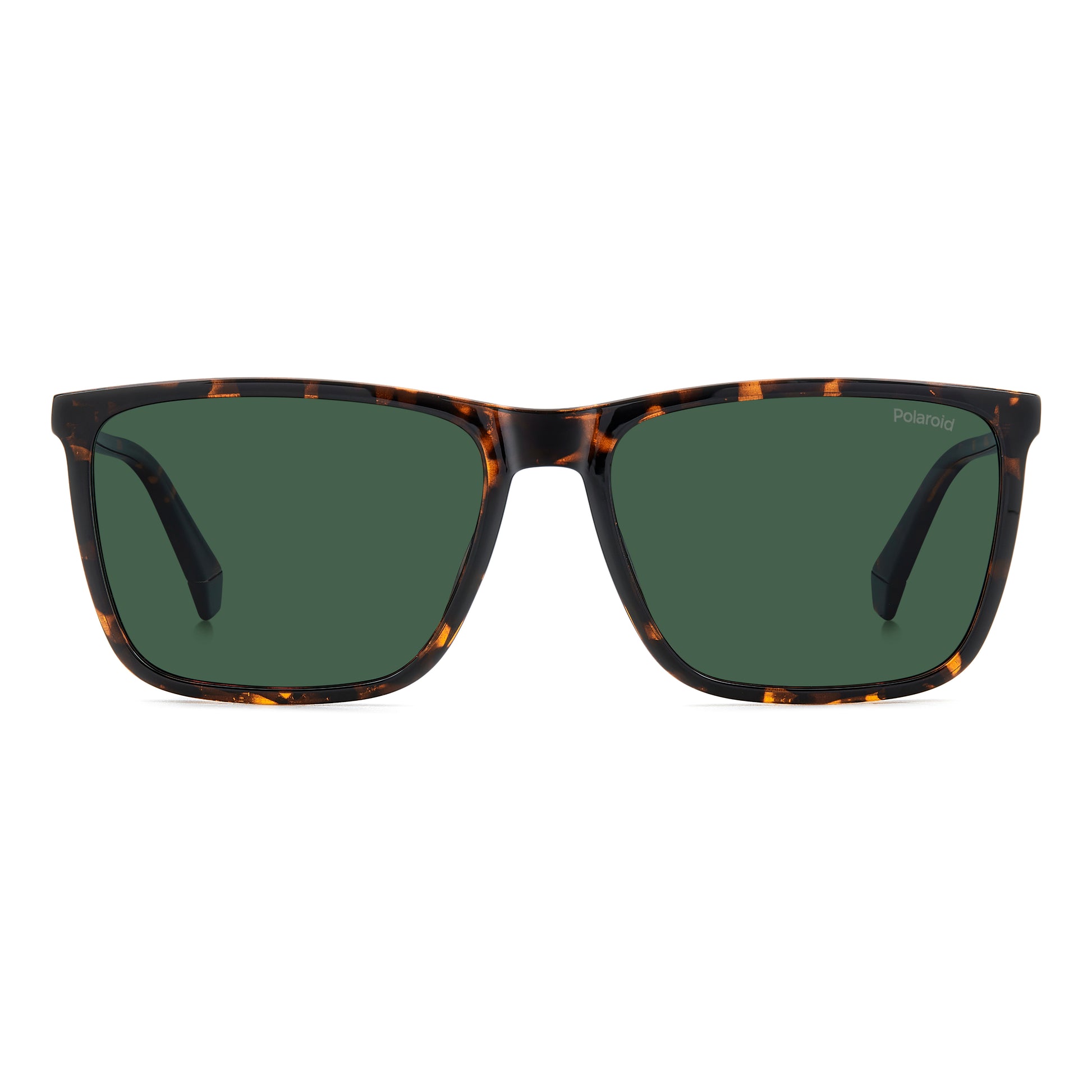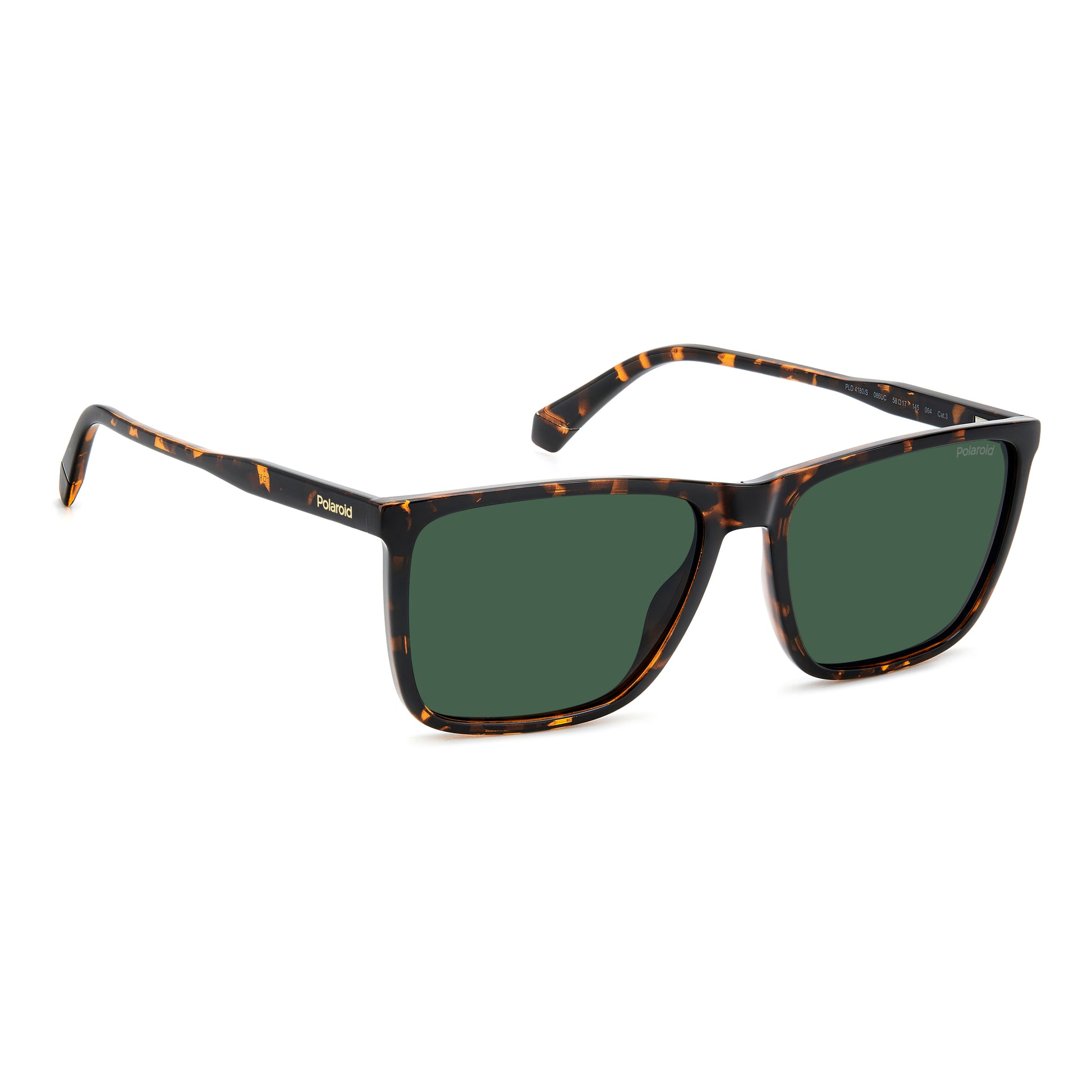 A timeless rectangular style with a slender profile and Polaroid lettered logo on temples.