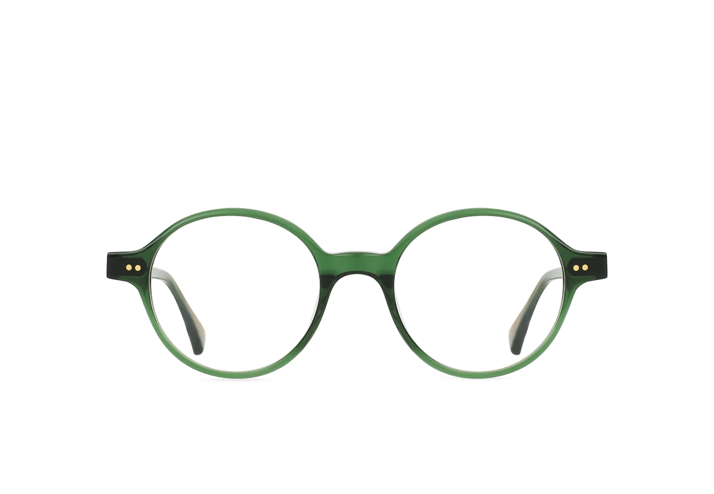 A true round frame with sculpted rims to give the frame an ultra-light look and feel. The rivet hinges on the temples provide structure and sturdiness, while laminated details on the temples give the frame nuance and distinction.