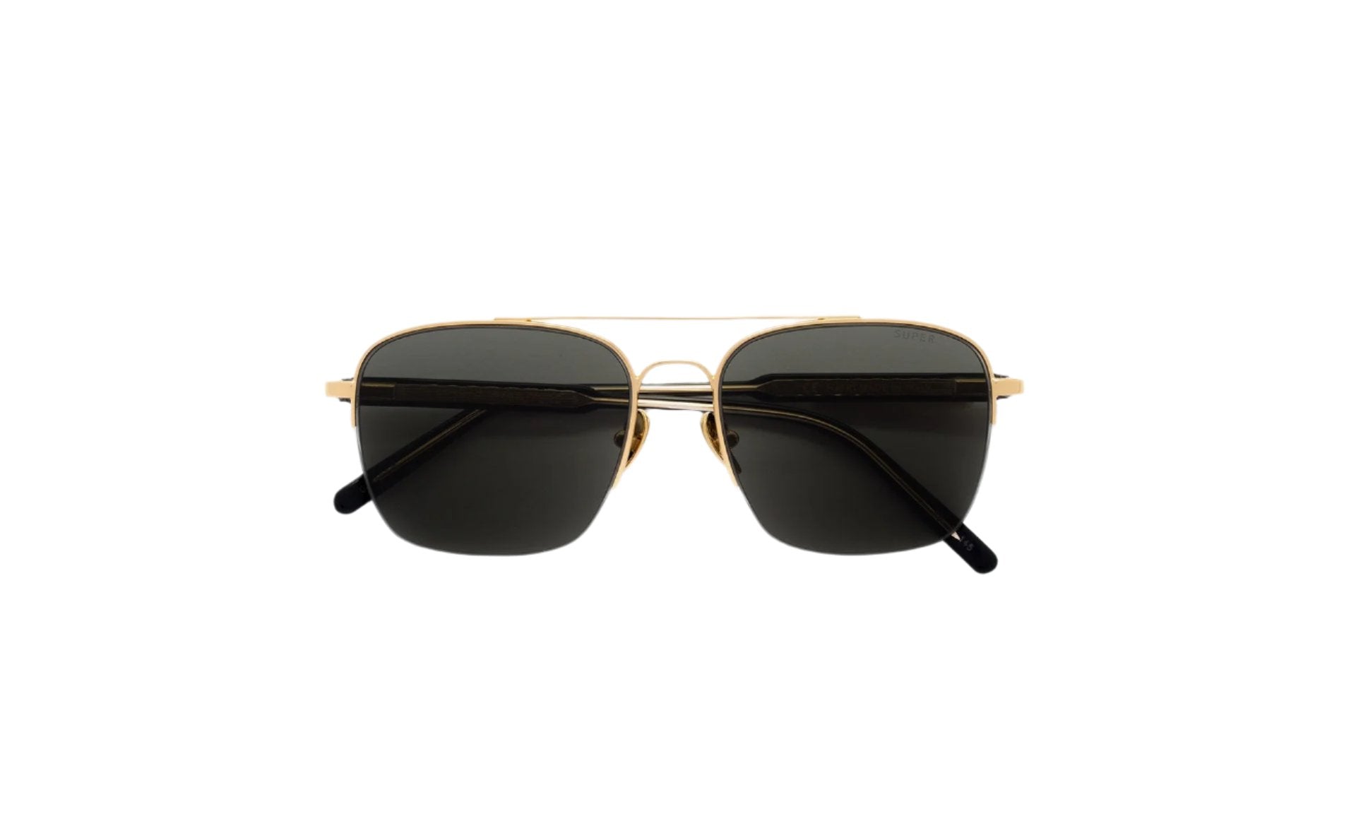 A sharp silhouette inspired by classic aviator-style frames interpreted with an angular, geometric design.