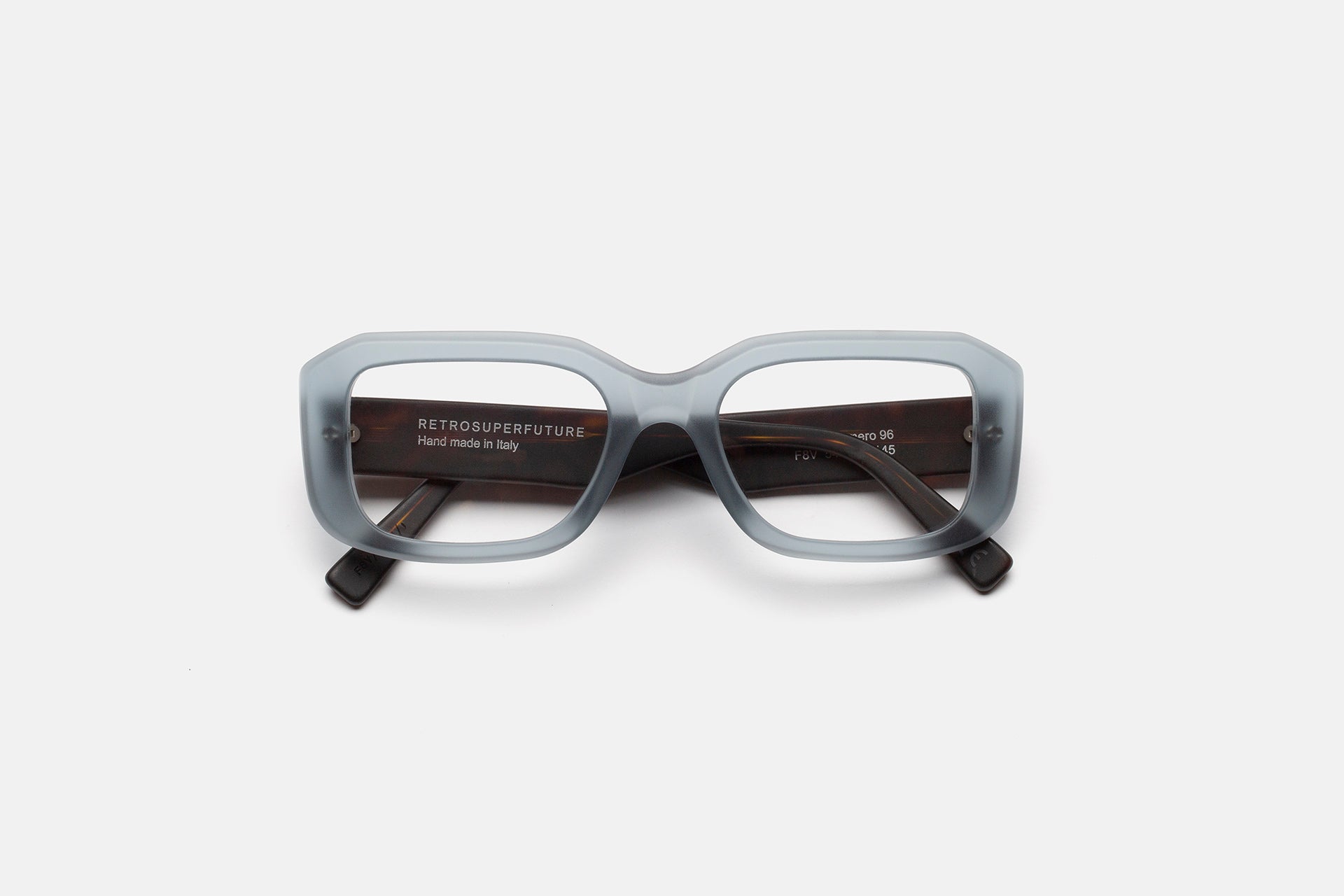 Numero 96 is a determined optical design: Take the 1960s, give it a good strong dose of 1990s street references, and a 2022 sleekness to finish it off. With its sturdy frame, wide squared lenses and thick acetate rims, Numero 96 was designed to reintroduce everyday eyewear as a recognizable and iconic feature of one’s personal style. This version comes in a matte teal crystal acetate for the frontal frame, with Havana matte temples.