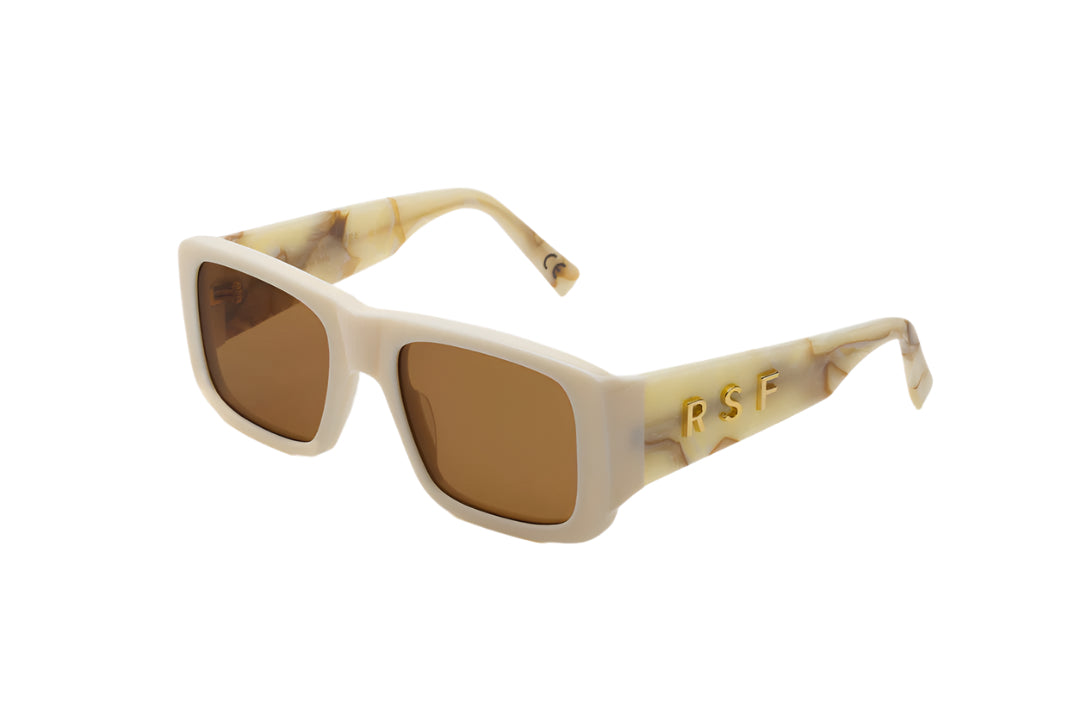 A key RSF statement piece, Onorato is a model inspired by 1970s references, from Aristotle Onassis to Miles Davis. A bold acetate frame with a sturdy, oversized design, Onorato features a straight upper line and a bold nose-bridge. Thick acetate rims curve around the temples match its distinctive wide temple tips.