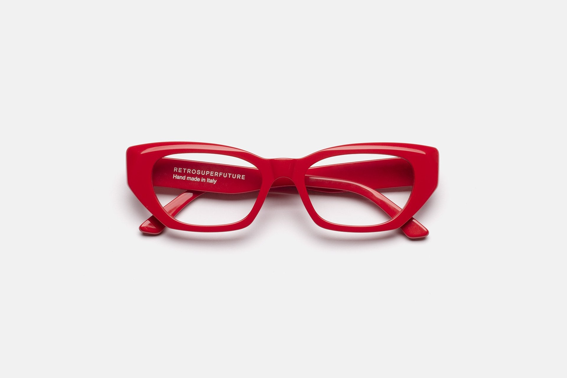 This silhouette features a sharp profile, with heavy squared temples, strict geometries and thick acetate rims.