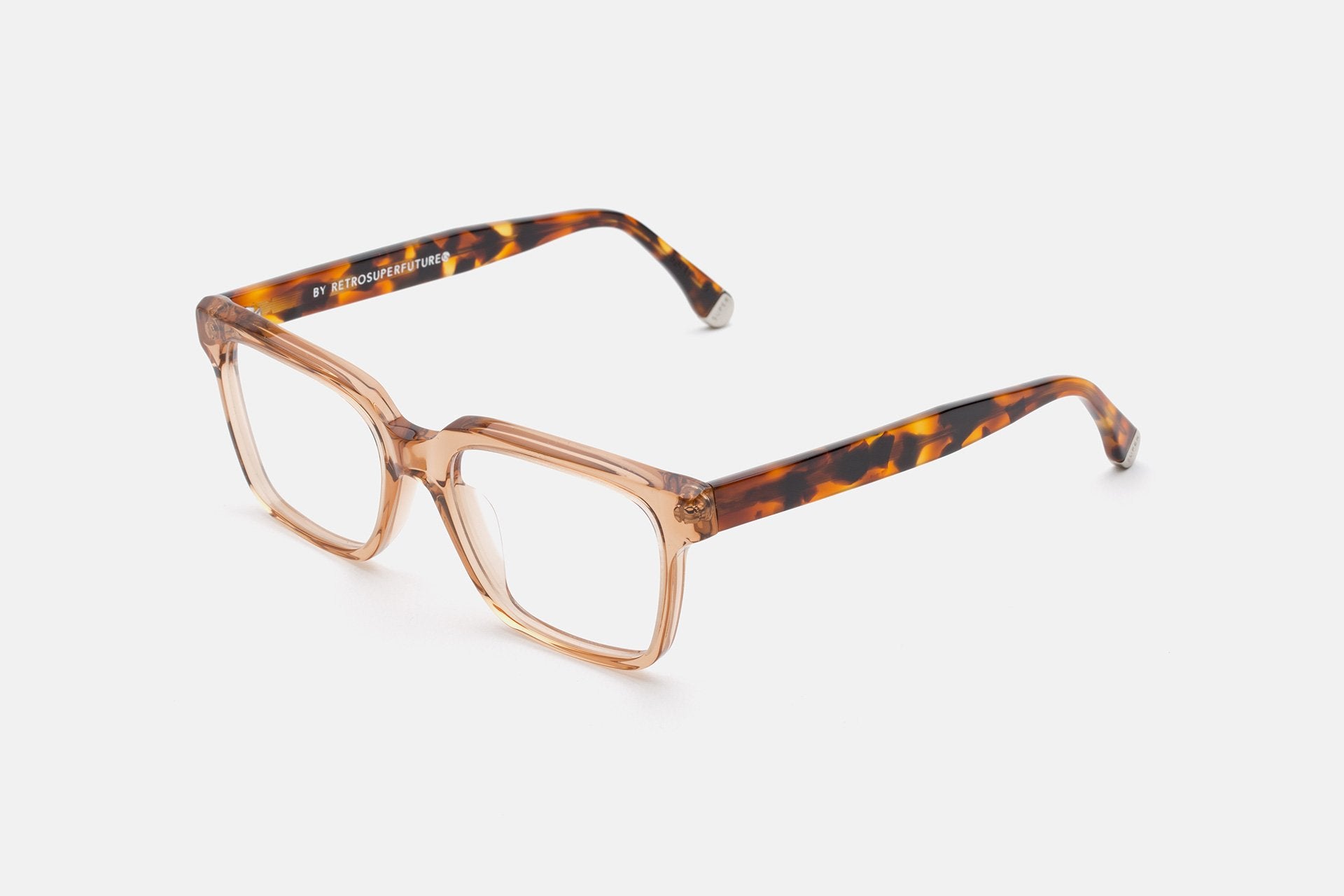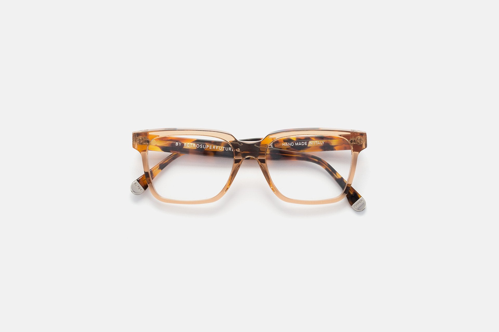 Numero 56 boasts of an instant classic look with a rich sculpted appeal.With its squared lenses and prominent temple tips this is a minimal but bold design that comes in a vibrant brown crystal acetate.