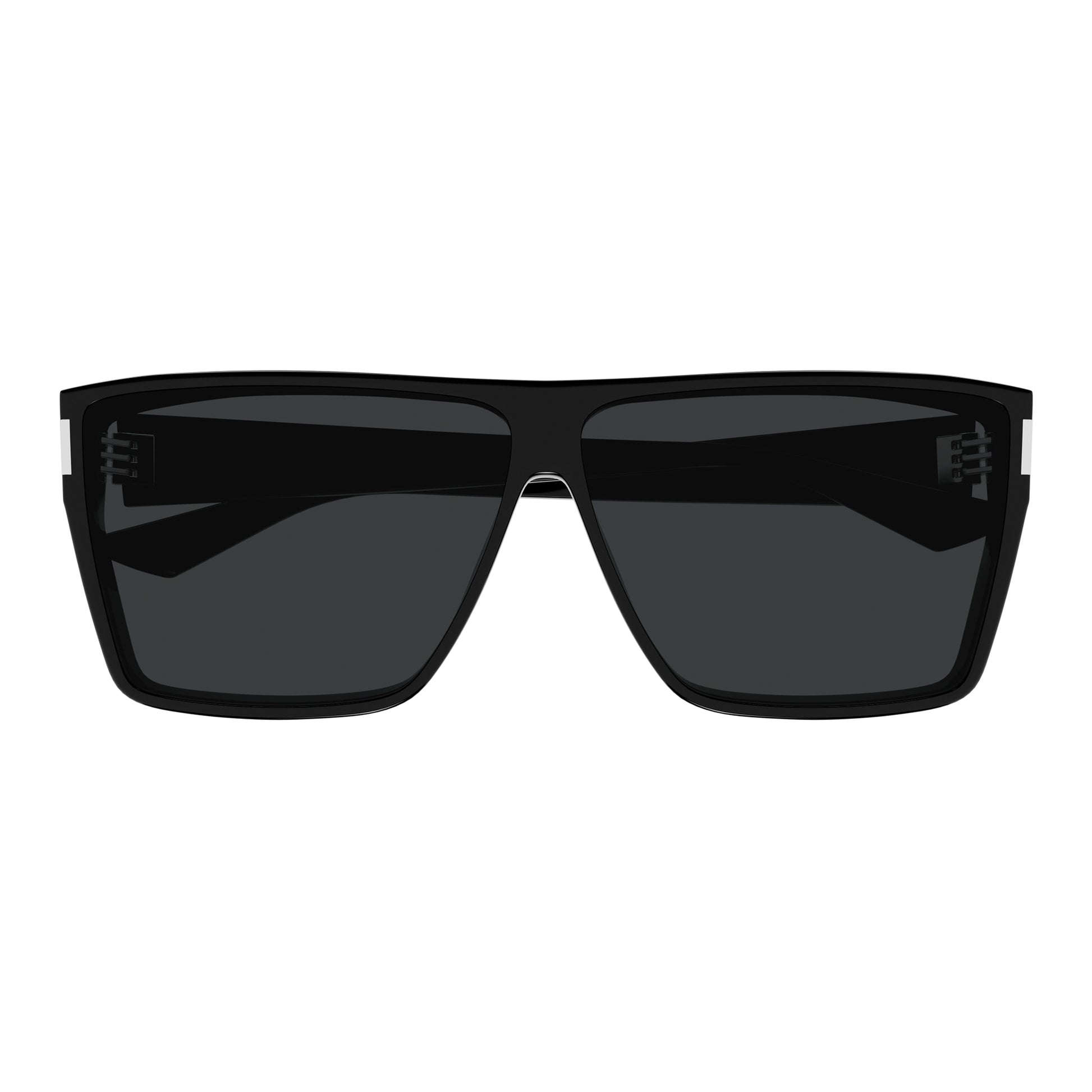 A flat top shape with thick spoiler side and Saint Laurent lettered logo on temples.