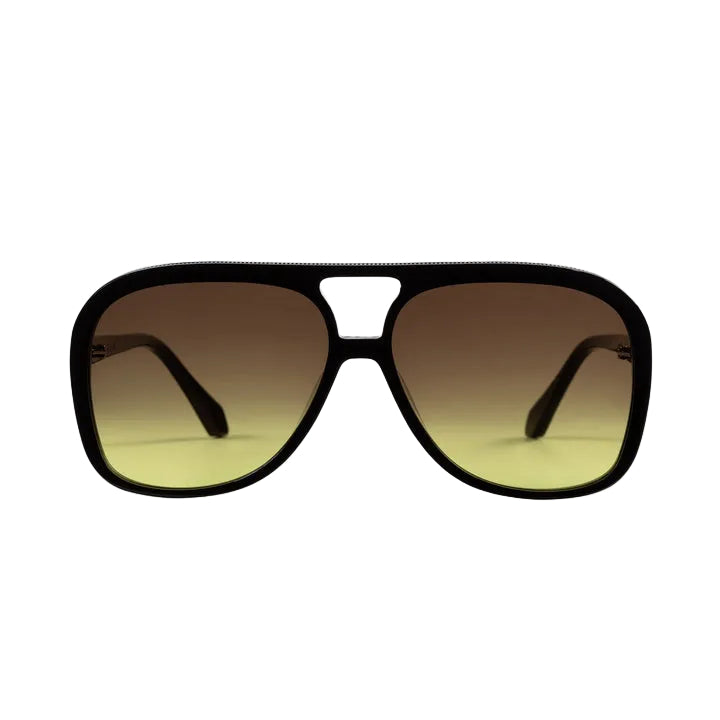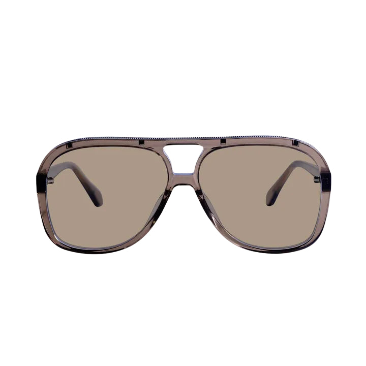 Make a statement with this thinned-out, acetate frame which takes inspiration from a traditional aviator shape. Featuring on-trend, oversized lenses and an inset metal brow trim.